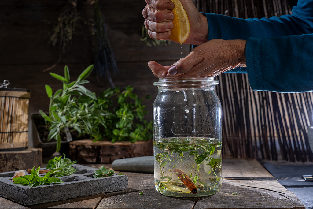 Der Alkohol in diesem Rezept sorgt dafür, dass die erwünschten Inhaltsstoffe aus den wertvollen Kräutern gezogen werden. Die Zitrone versorgt uns zudem mit dem wichtigen Vitamin C, welches unser Immunsystem unterstützt.