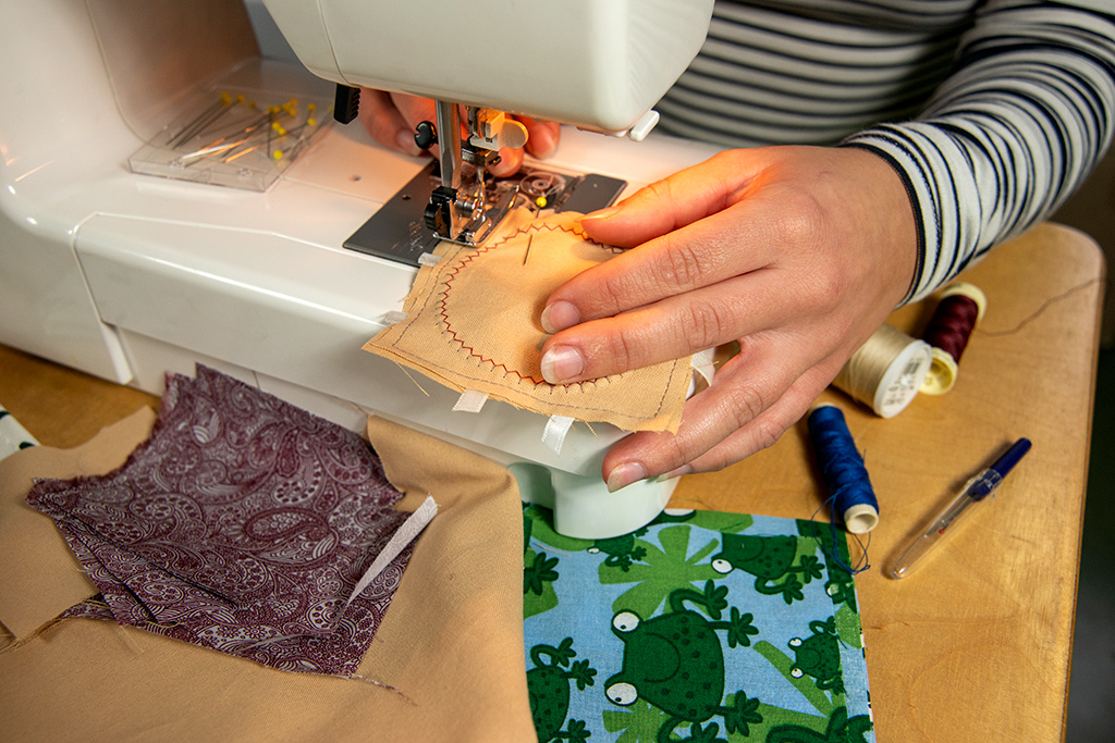Zum Abschluss schlug ich die offene Seite nach innen ein, fixierte sie mit Nadeln und nähte die Kissen rundherum mit etwa 0,5 cm Abstand zum Rand zu. So waren die kleinen Duftkissen ruckzuck fertig.